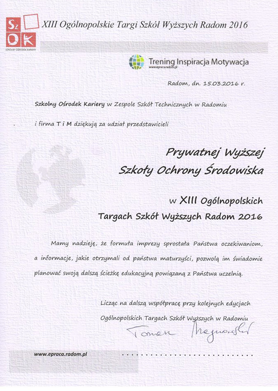 Ogólnopolskich Targów Szkól Wyższych w Radomiu,